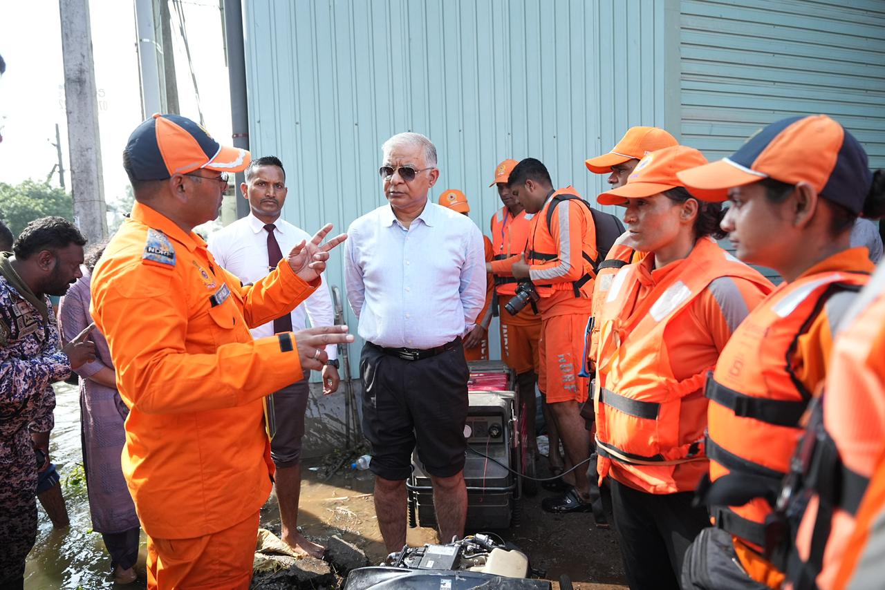 High Commissioner of India to Sri Lanka H.E. Santosh Jha visited Sedawatta near Colombo yesterday to review ongoing NDRF rescue operations. The High Commissioner also interacted with affected residents and local authorities coordinating the ground response. At this site, NDRF teams are conducting meticulous door-to-door evacuations and distributing essential relief in heavily inundated areas around Nadeegama on the banks of the Kelani River, where floodwaters have risen up to six to eight feet. 52 persons were evacuated from here yesterday. NDRF team in Badulla continues search operations in landfall areas. One deceased person was recovered after complex excavation operations, yesterday.