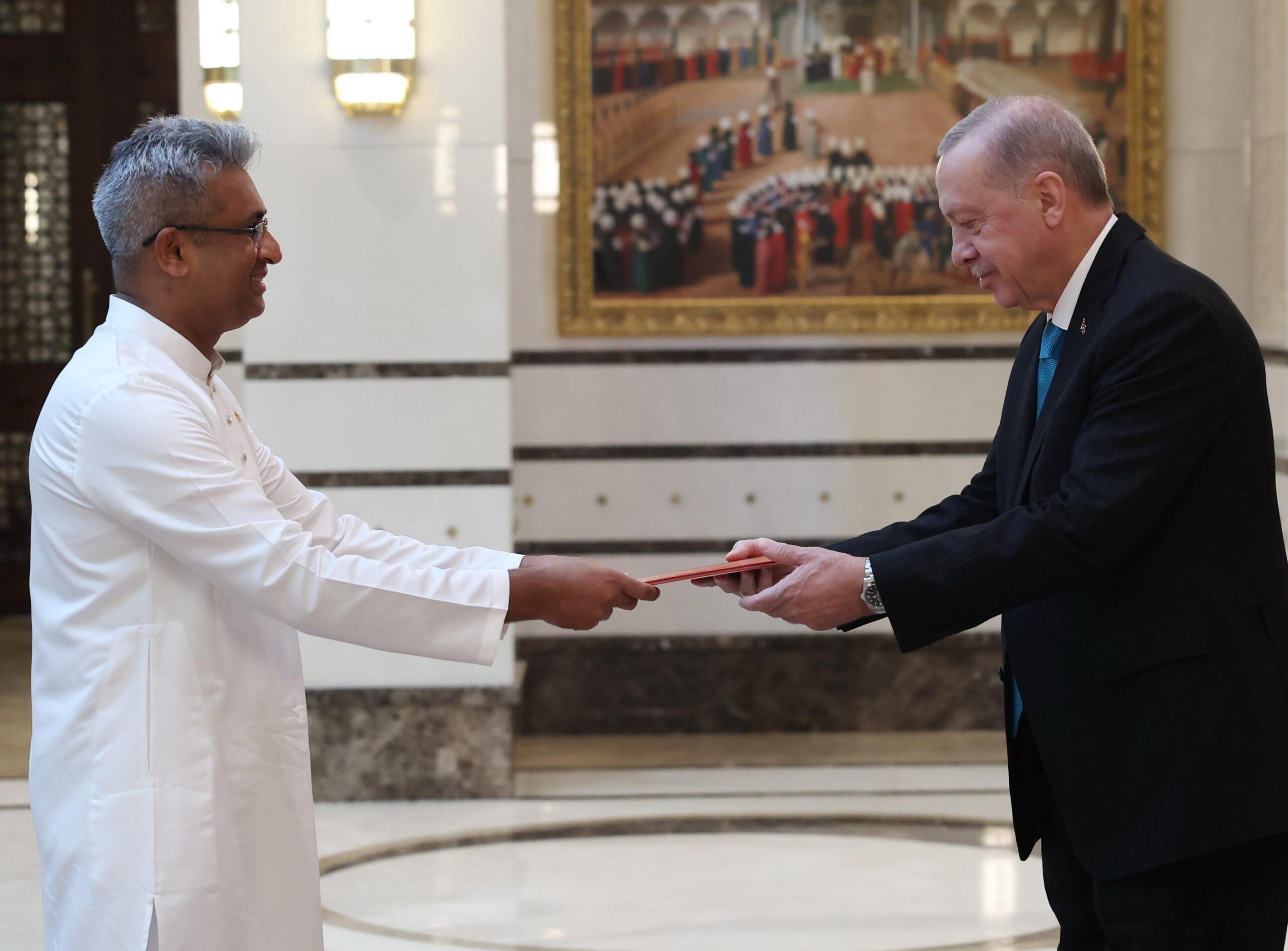 At the meeting following the Credentials Ceremony, President Erdoğan extended a warm welcome to Ambassador Kadurugamuwa and conveyed his best wishes for a successful tenure in further strengthening the longstanding friendship and cooperation between Sri Lanka and Türkiye.