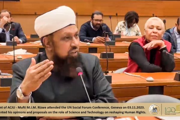 November 10, 2023 President of ACJU- Mufti M.I.M. Rizwe Participated in the UN Social Forum and delivered Friday Sermon at the UN Geneva Mosque Loc, Local