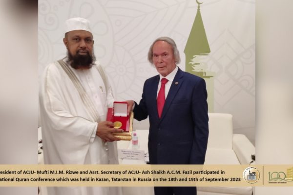 September 24, 2023 ACJU President Mufti M.I.M. Rizwe gets prestigious title of “Roza Mira” in Russia Loc, Local