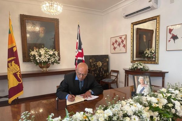 September 14, 2022 Palestinian Ambassador signs condolence book at British high commission, Colombo. Loc