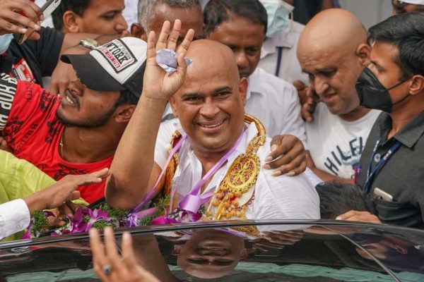 August 27, 2022 People welcomed freed Ranjan from jail, jeered at Minister Manusha who came to receive him Loc, Local