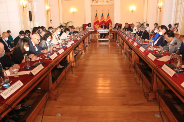 June 2, 2022 Minister of Foreign Affairs Prof. Peiris addresses Colombo based Diplomatic corps on the present situation in Sri Lanka Loc