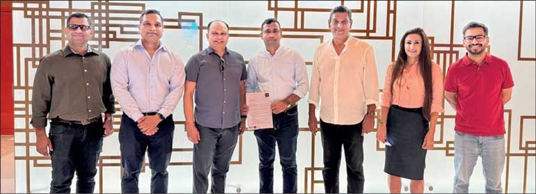Expolanka Holdings Leisure Cluster Director Sabry Bahaudeen (fourth from left) with the letter of appointment as Hospitality Partner. Others