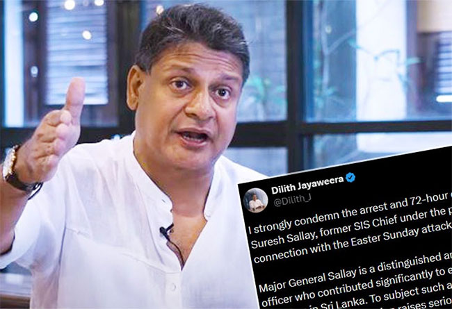 COLOMBO : The leader of the Sarvajana Balaya and Member of Parliament, Dilith Jayaweera strongly condemned the arrest and 72-hour detention of former state intelligence chief Major General (Retd) Suresh Sallay, which he claims is “under the pretext” of questioning him in connection with the Easter Sunday attacks.