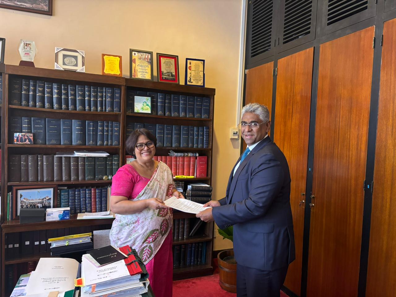 COLOMBO : Faiszer Musthapha PC, Member of Parliament and President’s Counsel, officially handed over two pivotal Private Member Bills to the Secretary General of Parliament, Ms. Kushani Rohanadeera on on Thursday, Feb. 5