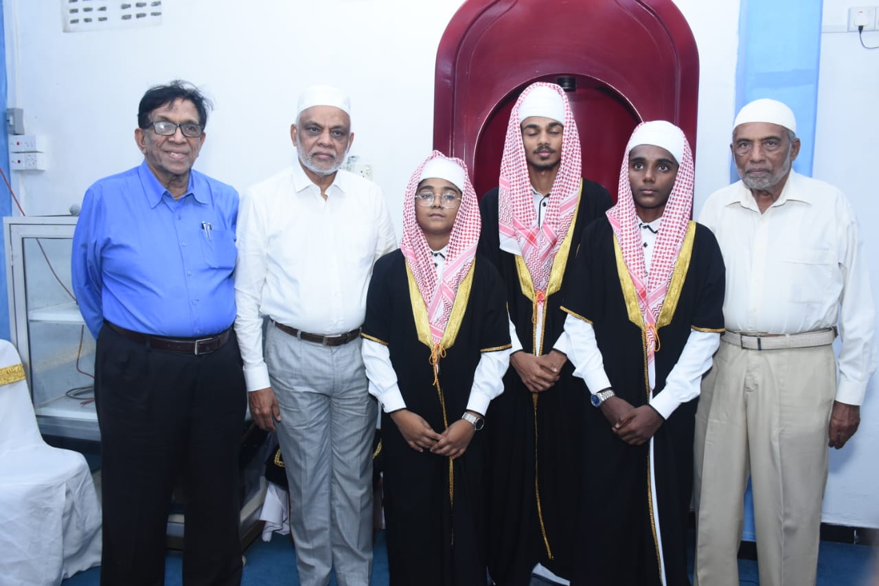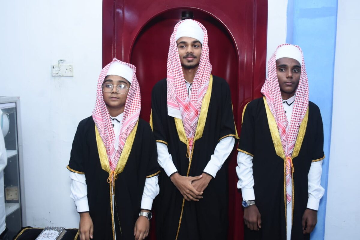 Three students of this Madharasa Al Hafil M.I. Inhamul Hasan, Al Hafil M.N.A. Hanan and Al Hafil M.H.M. Arham graduated by memorizing the Holy Quran Hifil subject and received certificates and awards from the chief guest Mohamed Awn , guest of honour A.H.M. Maheer and Mohammaed Rasooldeen, while the .Studetns presented qaseeda and Islamic Songs.