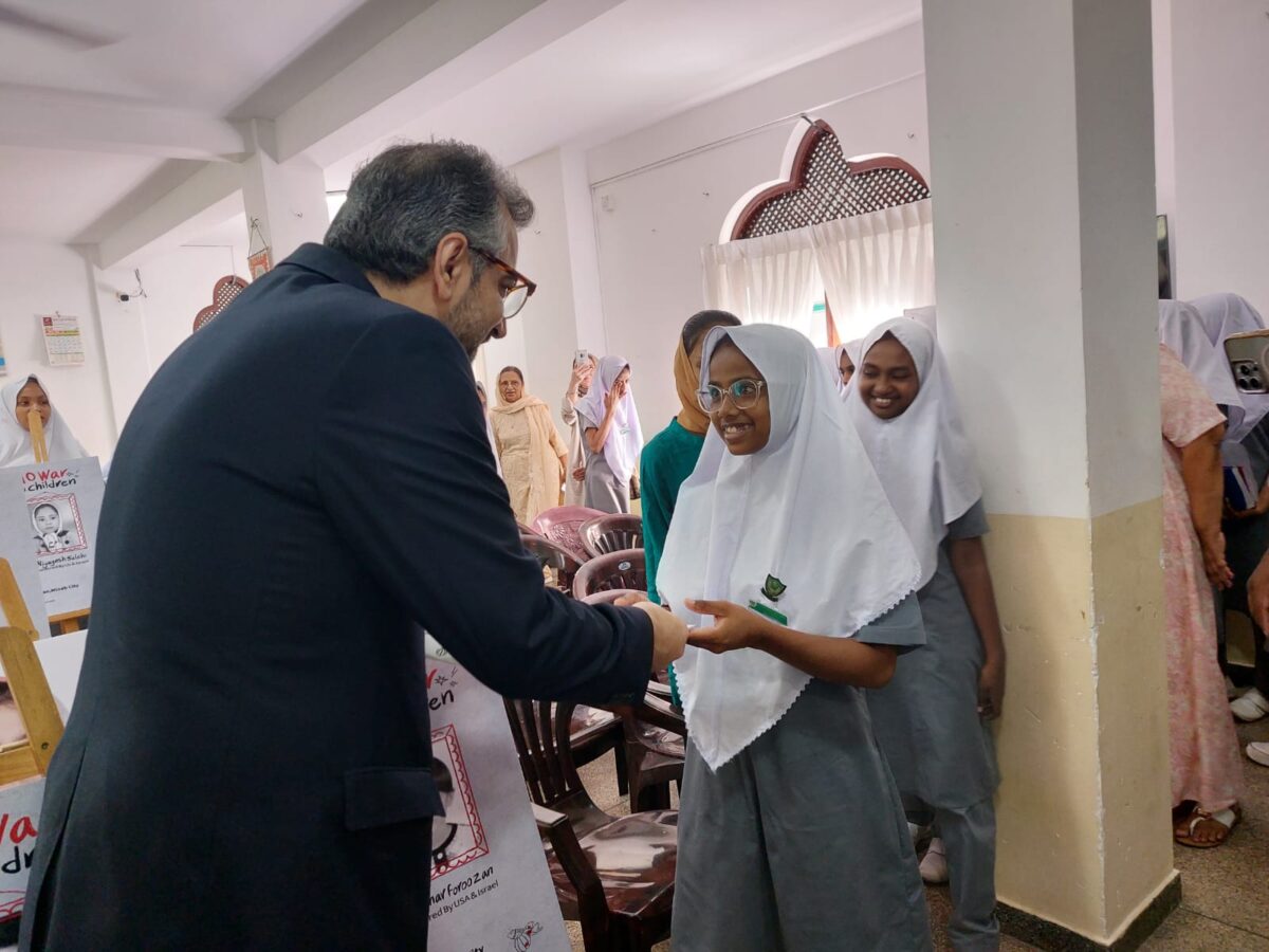During the visit, the Ambassador interacted cordially with the children and participated in the programme, which symbolically brought together orphaned students and remembrance of the martyred school children of Minab in a shared classroom setting reflecting hope and solidarity.