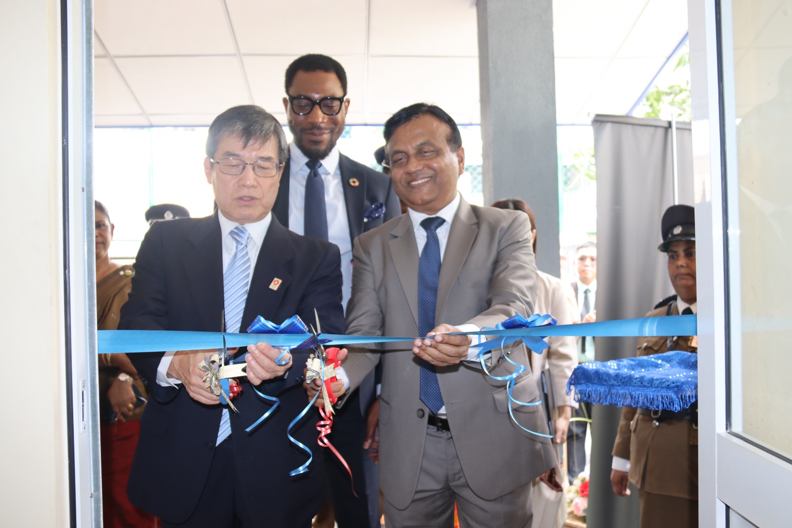 Hon. Sunil Watagala, Deputy Minister of Public Security & Parliamentary Affairs, His Excellency Akio ISOMATA, Ambassador of Japan to Sri Lanka, Kunle Adeniyi, UNFPA Sri Lanka Representative, Mr. D. W. R. B. Seneviratne, Secretary to the Ministry of Public Security & Parliamentary Affairs, Ms. Damayanthi Karunarathna, Additional Secretary to the Ministry of Public Security & Parliamentary Affairs, Mr. Sanjeewa Dharmarathna, Senior DIG – Western Province, Ms. Renuka Jayasundere, DIG – Children and Women Abuse Investigation Range, Mr. Kavinda Piyasekara, Senior Superintendent of Police Kalutara Division, Mr. Ruwan Wijesinghe, Headquarters Inspector, and police officers from the Kalutara Division were present at the opening ceremony.