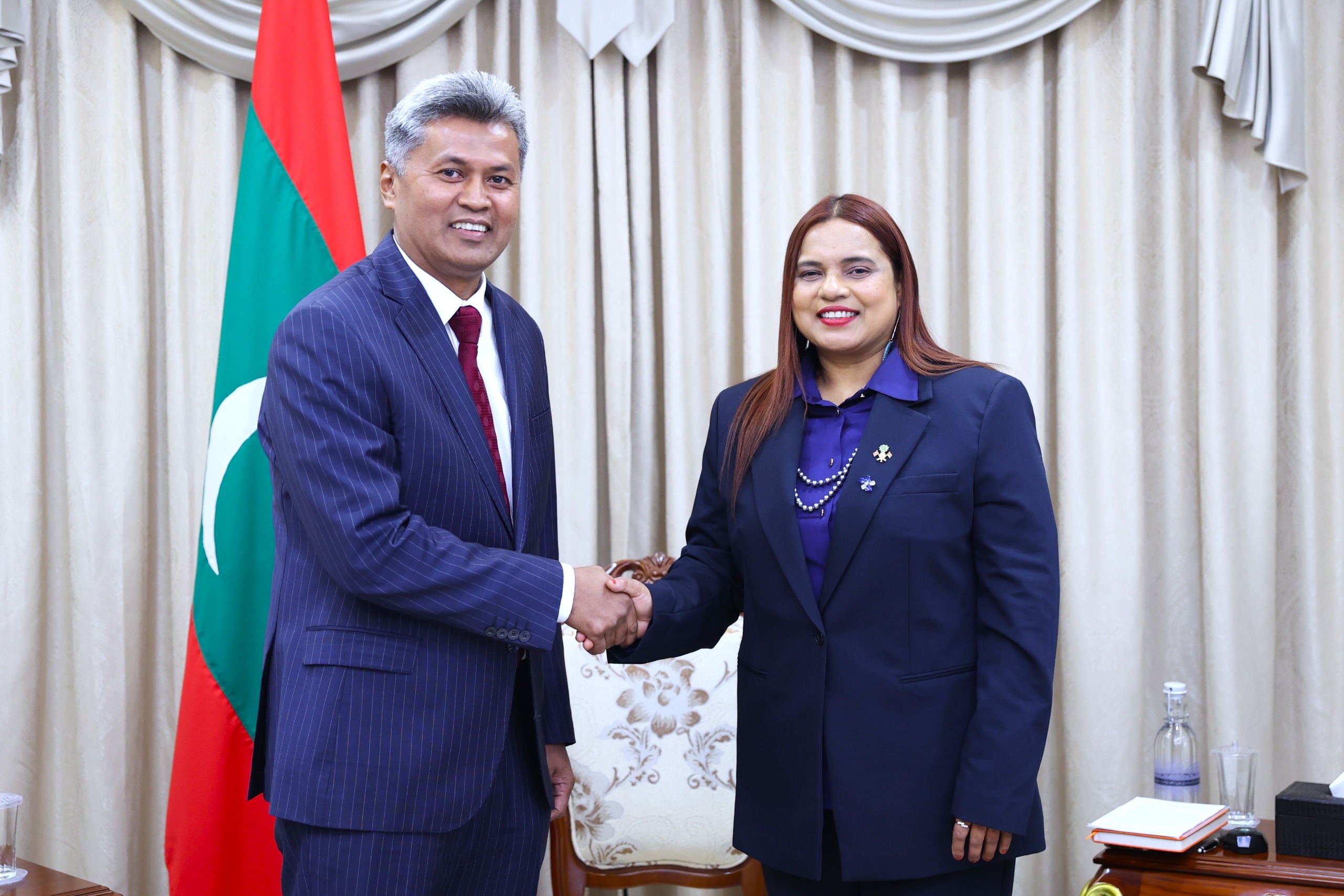 MALE : The High Commissioner of Sri Lanka in Maldives Mohamed Rizvi Hassen called on the newly appointed Minister of Foreign Affairs of Maldives lruthisham Adam at the Mlnistry of Foreign Affairs on 16 April