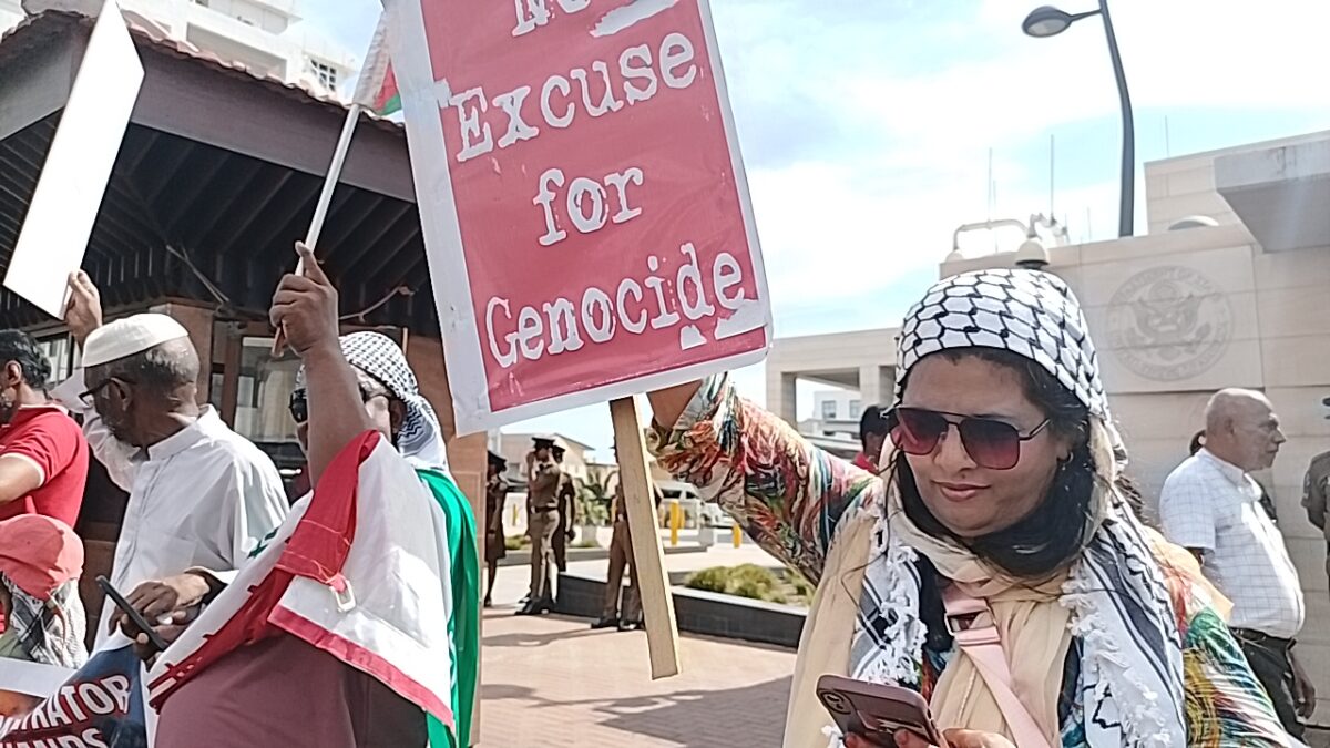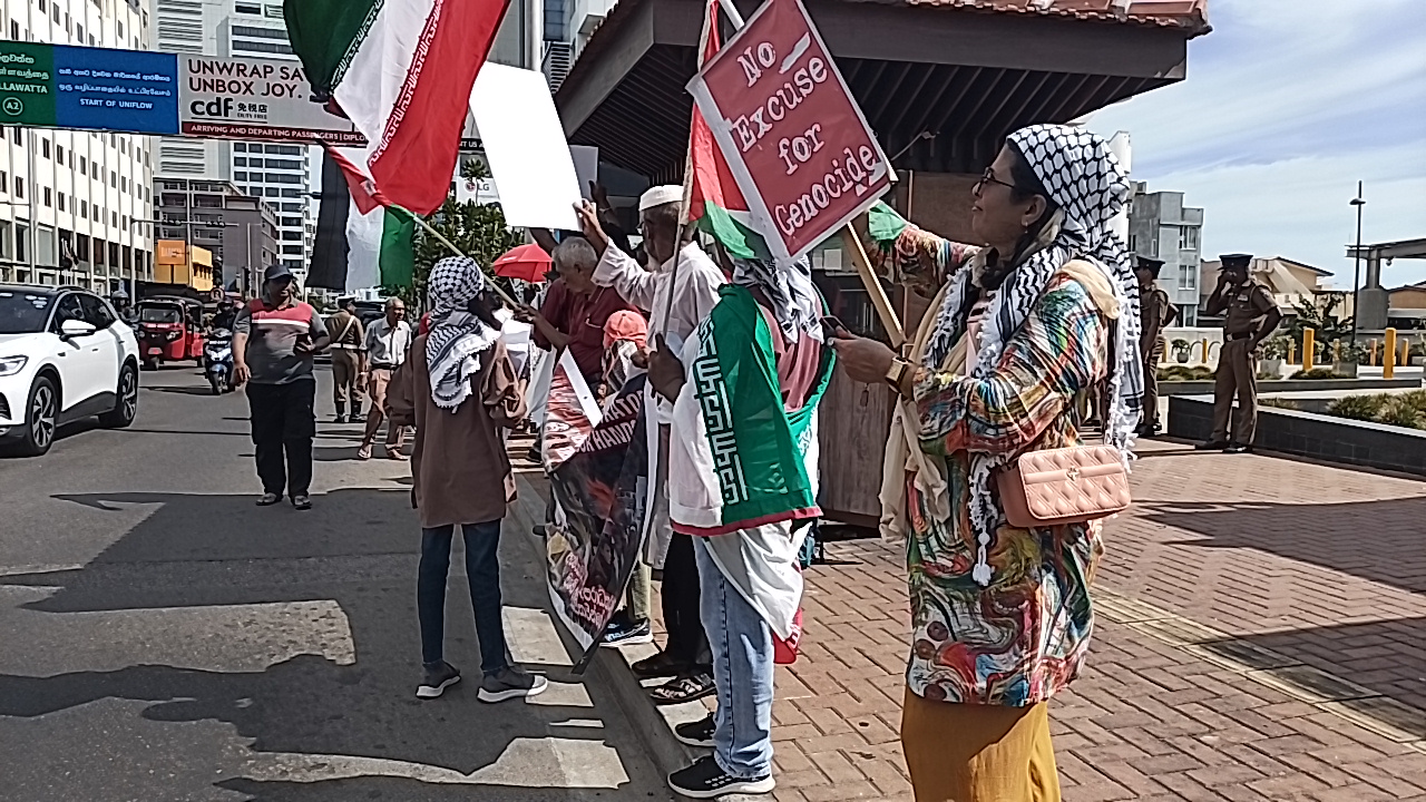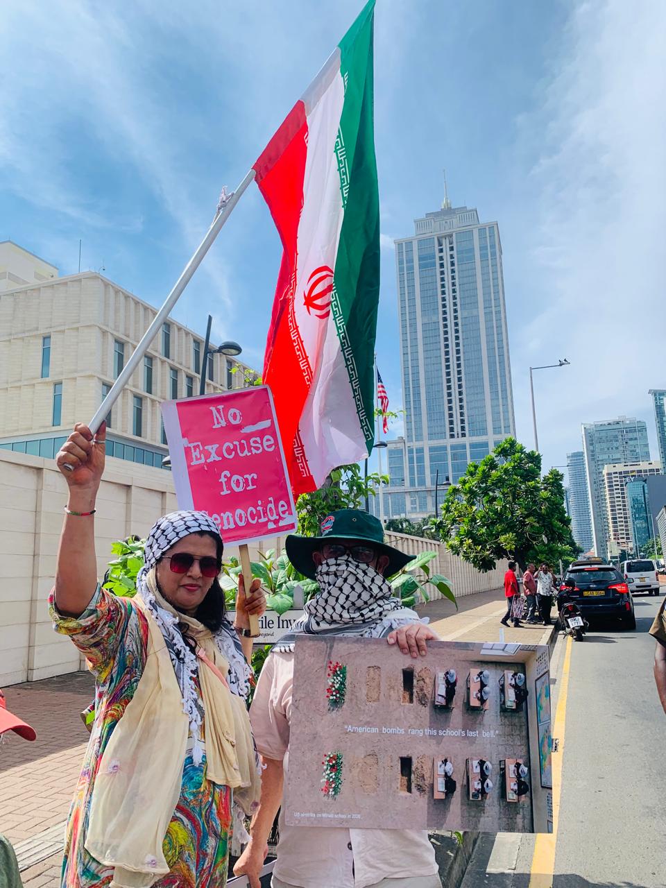 COLOMBO : A group , ‘ Voices For Iran’ staged a massive demonstration in front of the US embassy in Colombo on Friday, April 3 , demanding peace, Humanity & freedom ;;