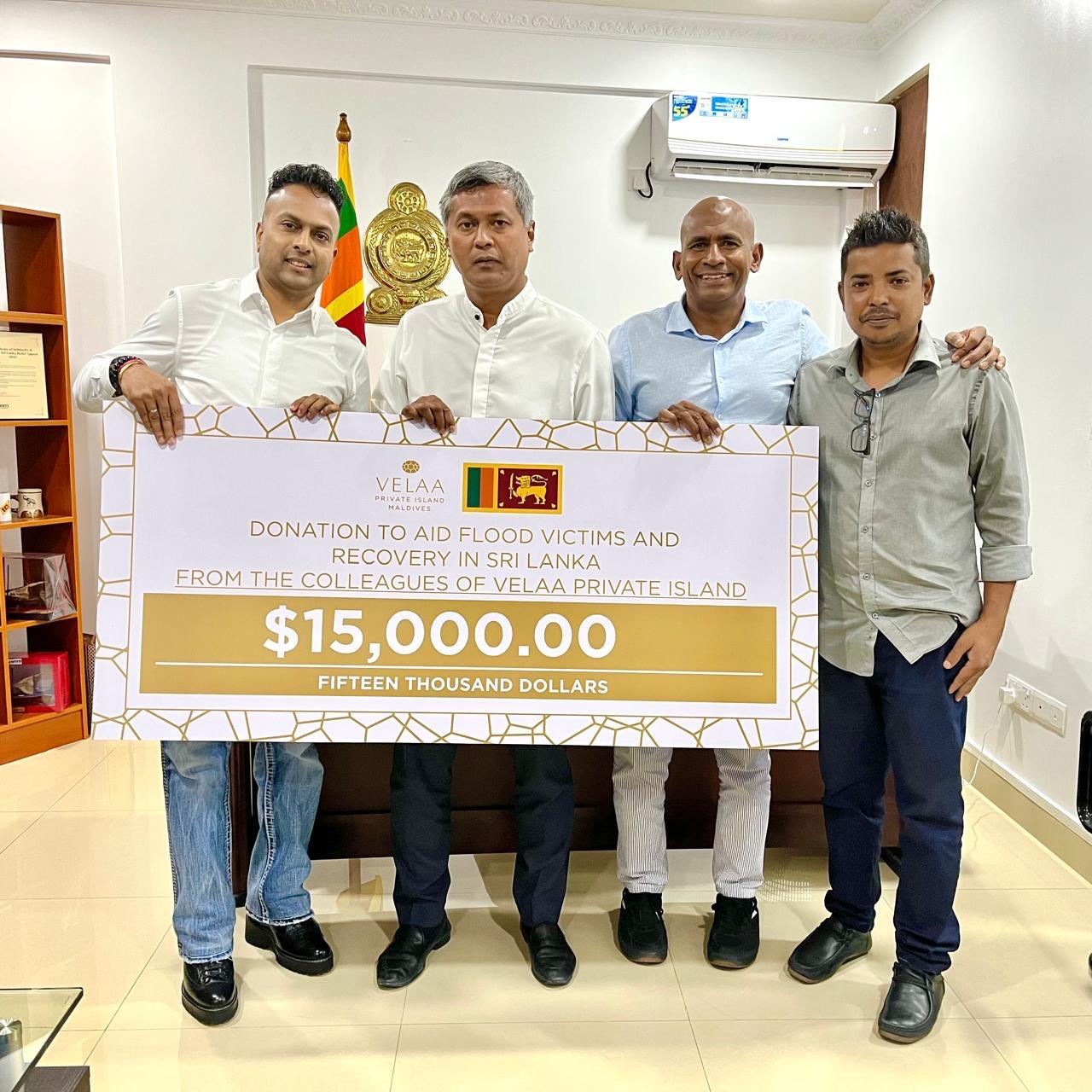 MALE : The owner of the Velaa Private Island Resort in Maldives Jiri Smejc on Monday,made a personal donation of US$ 100,000 to the relief effort of government of Sri Lanka. Additionaly the staf of the Velaa Private Island Resort also made donation of a US$ 15,000. The token cheques of the both donation was handed over to the High Commissoner of Sri Lanka in Maldives Rizvi Hassen by Gaushan De Silva, Director of the Velaa Private Island Resort Monday (16/12) at the Chancery. High Commissioner, on behalf of Government and people of Sri Lanka conveyed his gratitude and sincere thanks to the management of the Velaa Resort .
