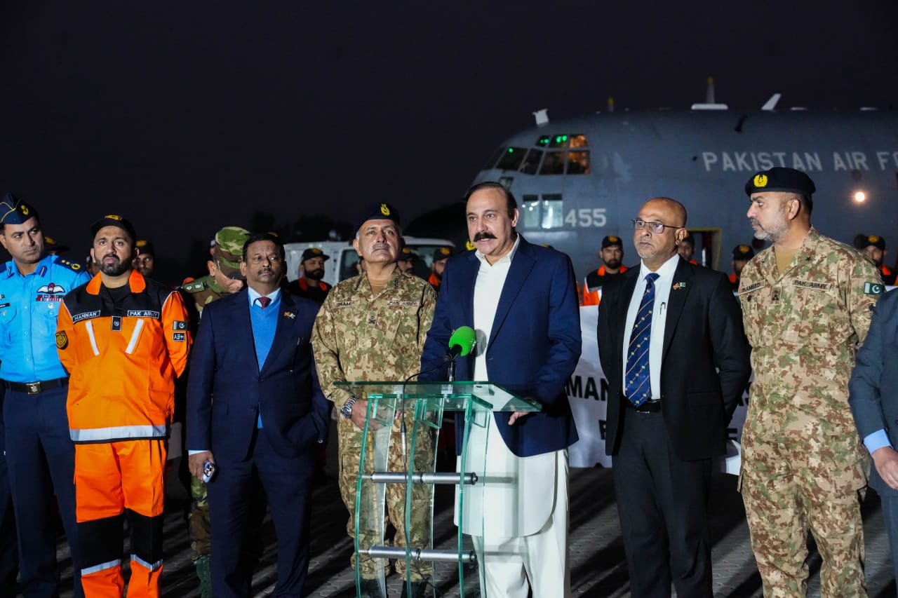 the affected areas of Sri Lanka. A Pakistan Air Force C-130 aircraft carrying a 47-