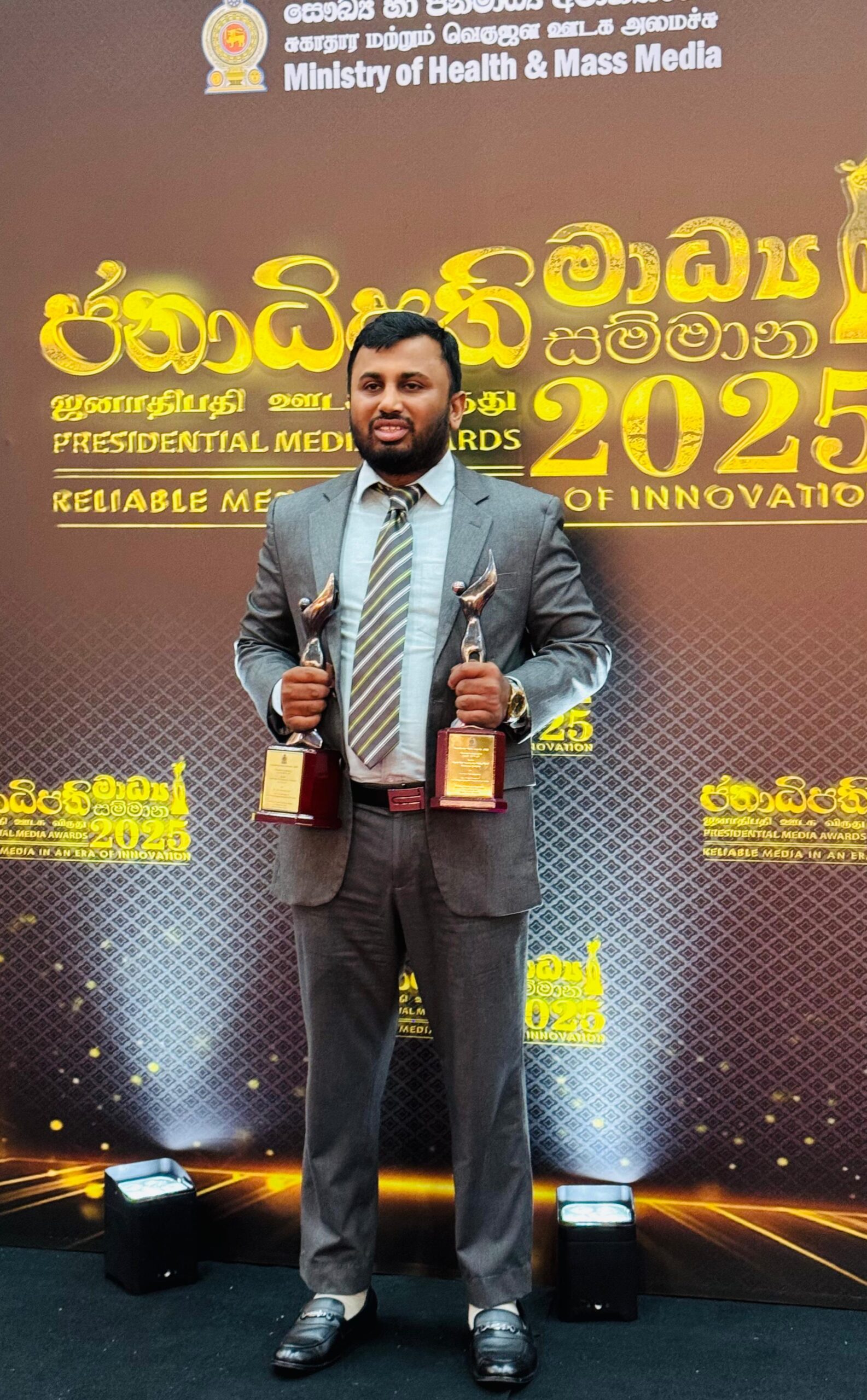 COLOMBO : Popular journalist Rifthi Ali received two awards at the Presidential Media Awards – 2025 of Sri Lanka held at Nelum Pokuna on Tuesday, Nov. 11