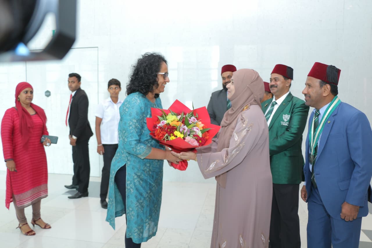On arrival , the prime minister and the deputy speaker were received by the national president. Amhar Shariff and his wife Maryam Shariff j