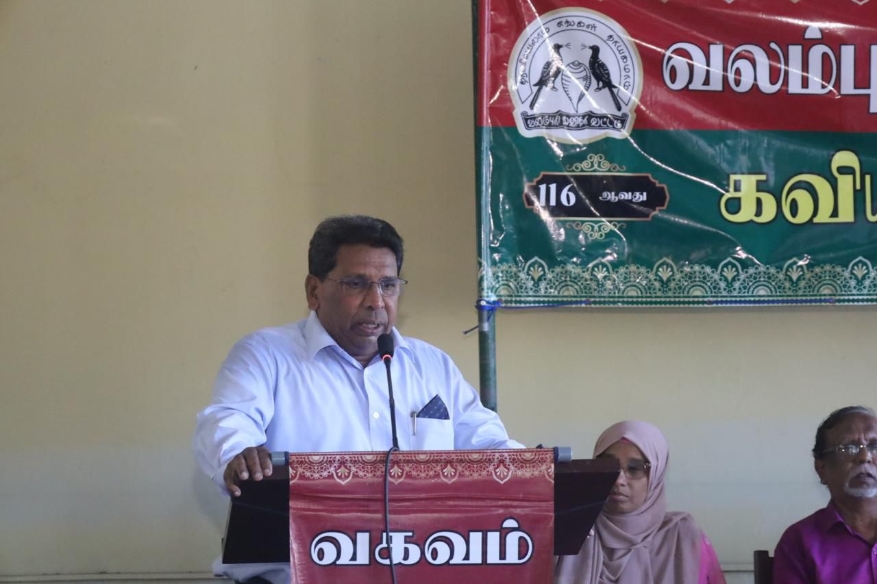 In the picture were Rauff Hakeem, Najmul Hussain (President, VAKAVAM), Ilanenjan Murshideen (Secretary), Eela Ganesh (Treasurer), S. Danabalan (National Organiser), Thamil Thendran Ali Akbar (Committee Member) ,Laila Akshiya, who chaired the poetic session.