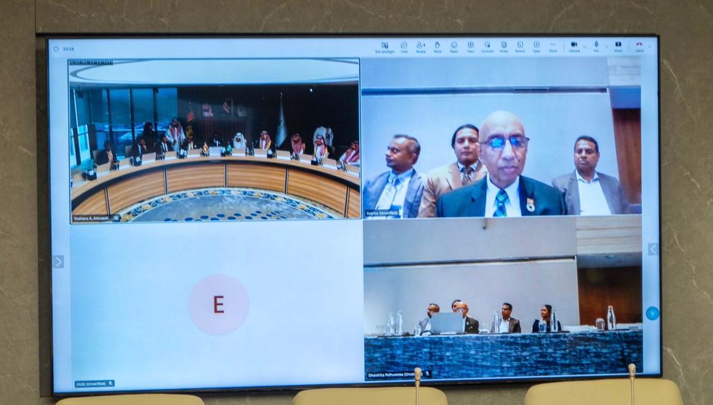 Chairman of the Federation of Saudi Chambers Hassan Al-Huwaizi and President of the Sri Lanka Chambers of Commerce and Industry Keerthi Gunawardane who virtually joined the meeting, signed the MoU establishing the Business Council. Ambassador of Sri Lanka to the Kingdom of Saudi Arabia Ameer Ajwad and Chairman of the Saudi Chambers of Commerce Hassan Al-Huwaizi exchanged the signed MoU.