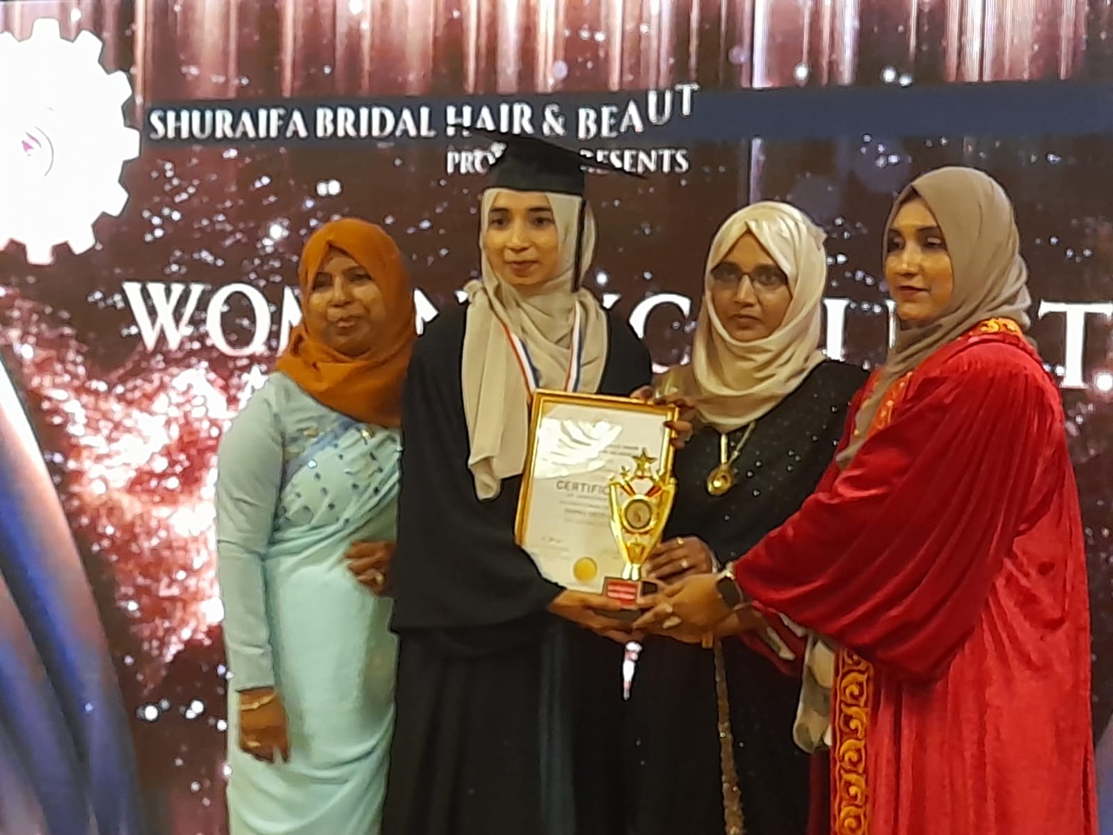Popular film actor and producer Ms. Shanthana attended as the chief guest. Among the distinguished guests were Sarah Shiraj, Directress of Salon Shalook by Sarah; M.N. Fathima Safa, Director of Safa Learning Institute; Bridal Mehendi Academy Director Asma Faiz, Fathima Hajara, Director of Hajara Bridal and Beauty Salon; Aynul Nazreena, Directress of Naaz Academy of Arts , Aliya Salon and Tailoring Academy Direcress F.Z.M. Shafeeka, and Shereen Ameer Khan.