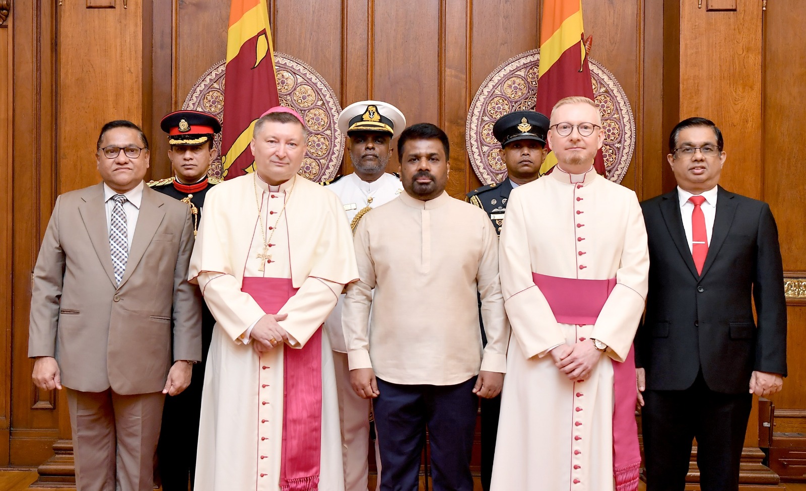COLOMBO ;Two High Commissioners, three Ambassadors and an Apostolic Nuncio-designate of the Holy See presented their credentials to Anura Kumara Dissanayake at the Presidential Secretariat this morning (20).
