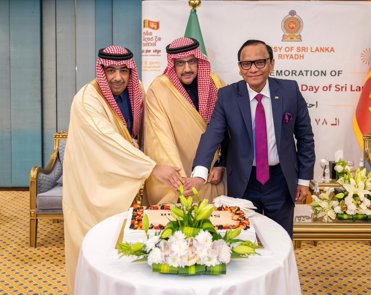 Ambassador of Sri Lanka to the Kingdom of Saudi Arabia, O. L. Ameer Ajwad hosted a diplomatic reception in Riyadh to commemorate the 78th Anniversary of Sri Lanka’s Independence. Dr. Faisal bin Abdulaziz Al-Sudairy, Deputy Governor of Riyadh Region was the chief guest at the ceremony.