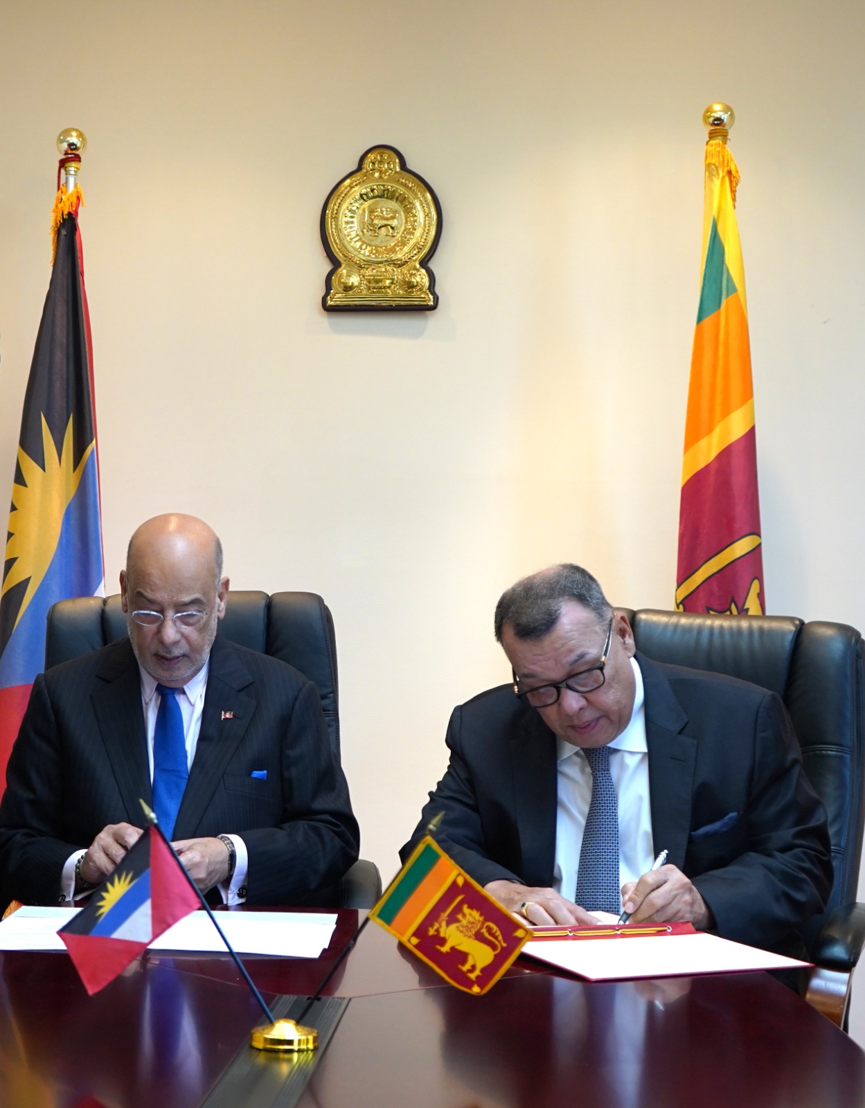 The relevant agreement was signed by Ambassador of Sri Lanka to the United States of America Mahinda Samarasinghe and Ambassador of Antigua and Barbuda to the United States of America Sir Ronald Sanders in Washington D.C.