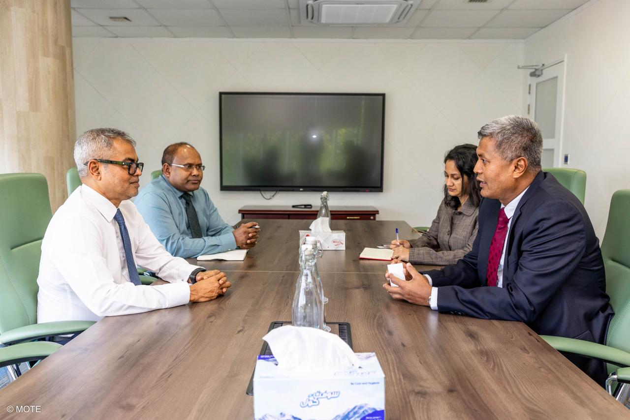 The meeting provided an opportunity for a constructive exchange of views on climate change and related matters of mutual interest, emphasizing the importance of strengthened cooperation in addressing shared environmental challenges and advancing sustainable tourism, while reaffirming the close and cordial bilateral relations between Sri Lanka and the Maldives. Ms. Thimuthu Dissanayake, Counsellor of the Mission and Hon. Dr. Abdullah Niyaz, State Minister of Tourism and Environment joined the meeting.