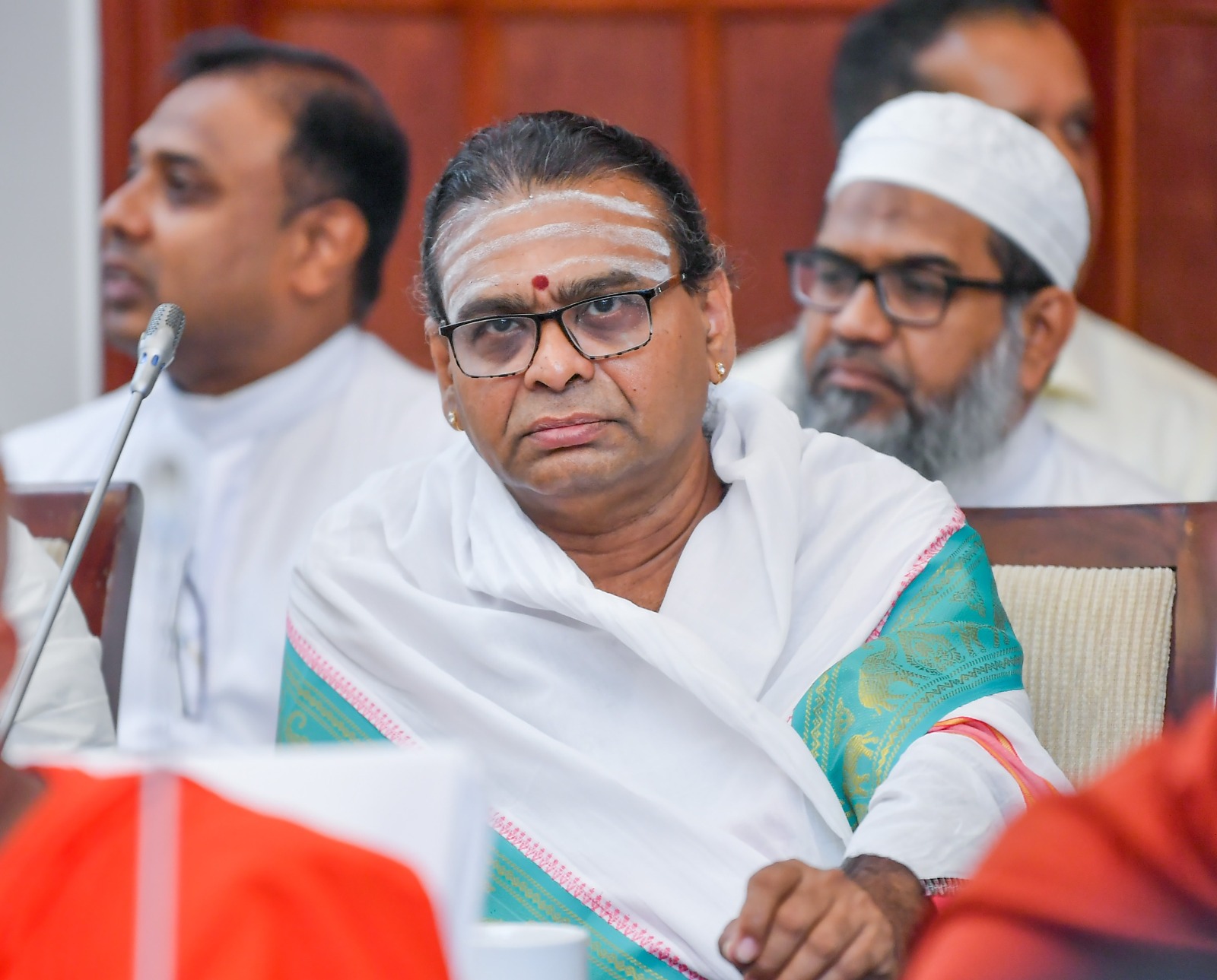 Also in attendance were Hindu religious leaders, including Venerable Swami Aksharatmananda, representatives of the Catholic Church and the National Christian Council, including Father Alec Roy Samantha Fernando, All-Ceylon Muslim religious leaders, including the General Secretary of the Jamiatul Ulama Organization, Ash-Sheikh Arkam Nooramith, Deputy Minister of Religious and Cultural Affairs, Muneer Mulaffer , as well as senior officials of the Ministry of Buddhasasana, Religious and Cultural Affairs and relevant line institutions.