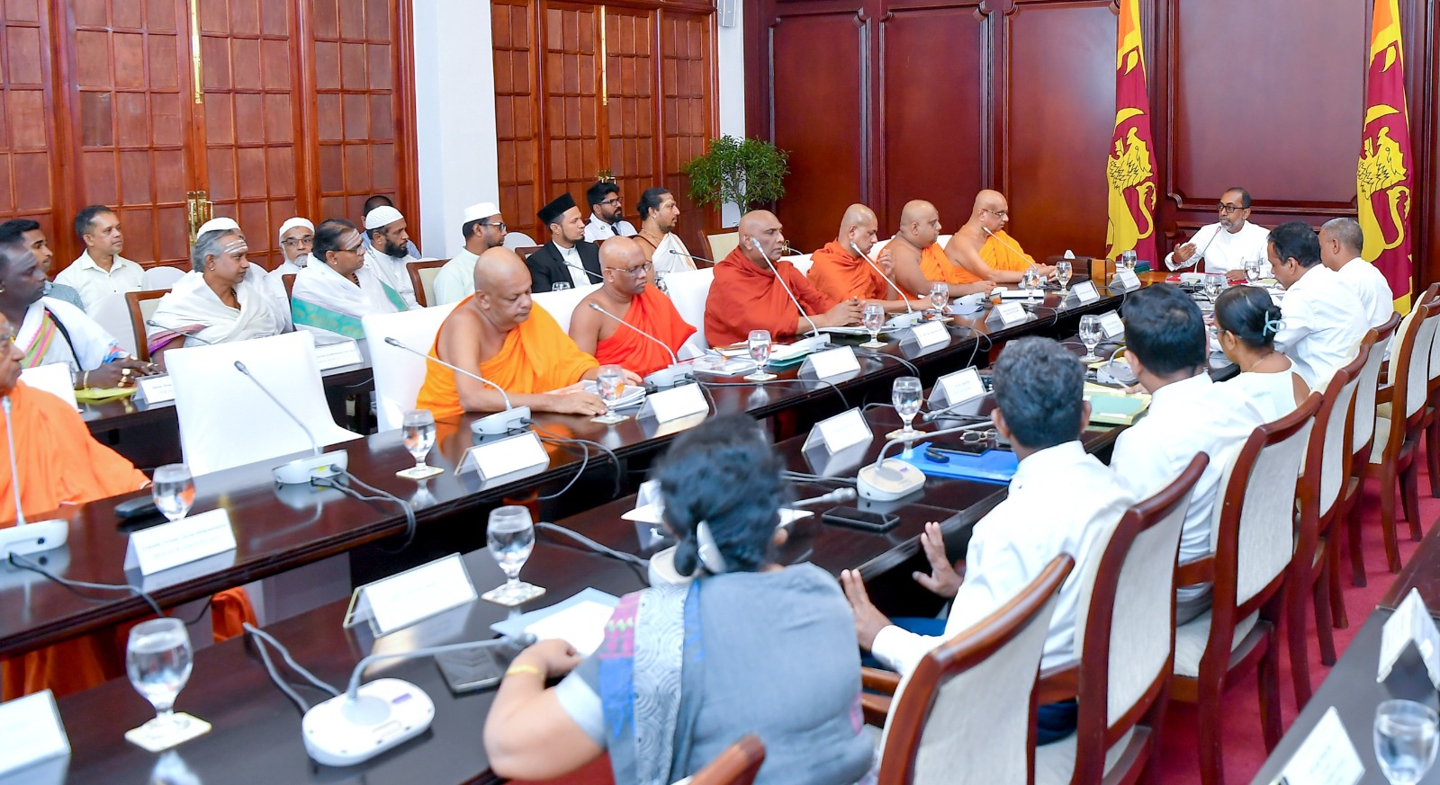Also in attendance were Hindu religious leaders, including Venerable Swami Aksharatmananda, representatives of the Catholic Church and the National Christian Council, including Father Alec Roy Samantha Fernando, All-Ceylon Muslim religious leaders, including the General Secretary of the Jamiatul Ulama Organization, Ash-Sheikh Arkam Nooramith, Deputy Minister of Religious and Cultural Affairs, Muneer Mulaffer , as well as senior officials of the Ministry of Buddhasasana, Religious and Cultural Affairs and relevant line institutions.