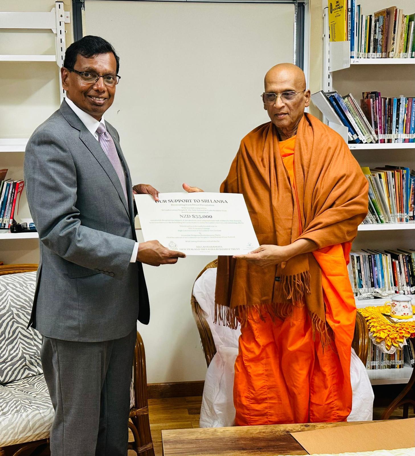 The donation was formally presented to Sri Lanka’s High Commissioner to New Zealand, Prasanna Gamage, at a ceremony held on 14 February 2026 at the Sri Lankaramaya Buddhist Temple in Auckland.