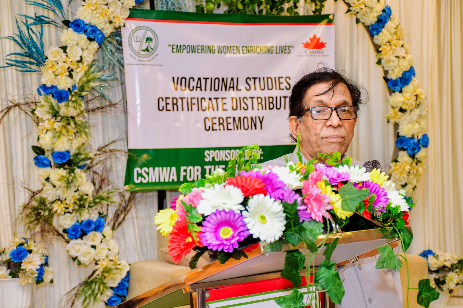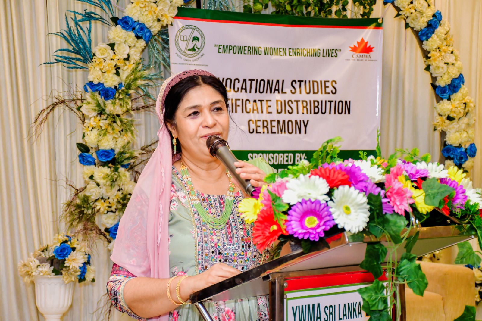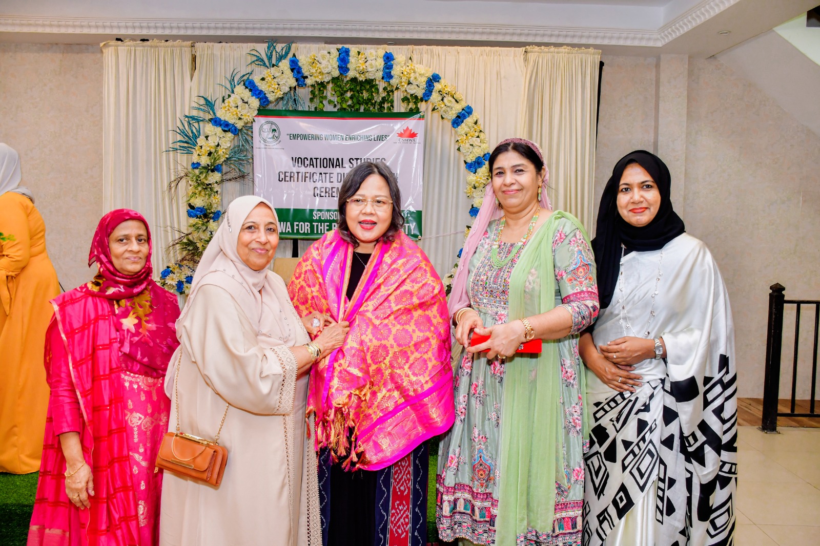 YWMA Vice Patron Mrs. Mazahira Jabir draped the golden shawl and President Mrs. Fawaza Thaha presented a token of appreciation to the chief guest at this ceremony.