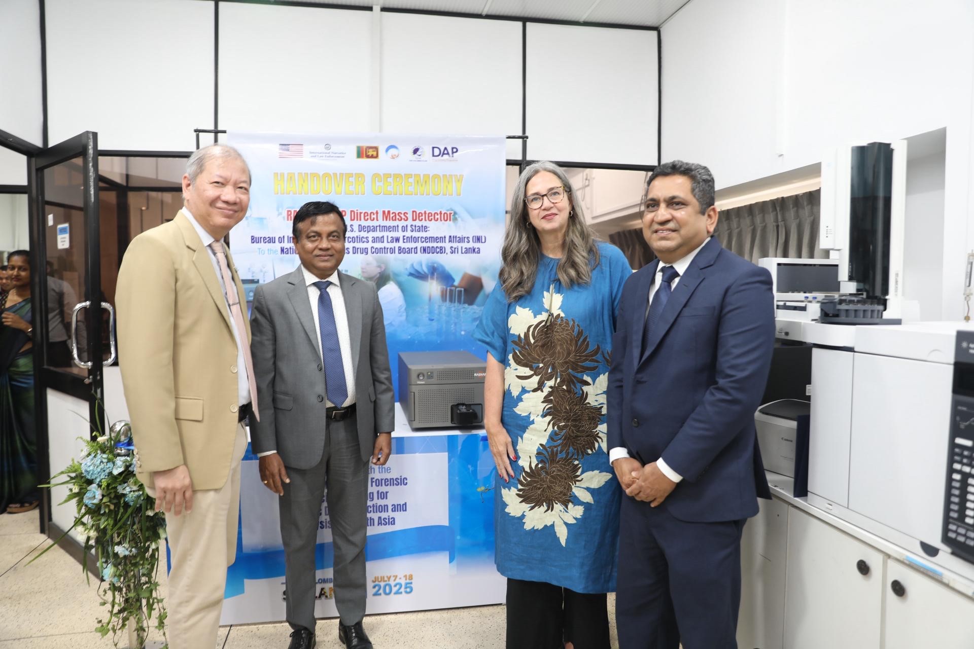 COLOMBO – The U.S. Embassy in Sri Lanka, in collaboration with the National Dangerous Drugs Control Board (NDDCB), concluded a two-week regional training initiative focused on identifying and analyzing synthetic drugs and new psychoactive substances, particularly fentanyl and its analogs—substances that have become an urgent global concern. The training culminated in a formal handover ceremony of drug testing equipment, where U.S. Deputy Chief of Mission Jayne Howell, Deputy Minister of Public Security and Parliamentary Affairs Sunil Watagala, and NDDCB Chairman Dr. Indika Wanninayake presided over the presentation of the Radian ASAP instrument to Sri Lankan authorities.