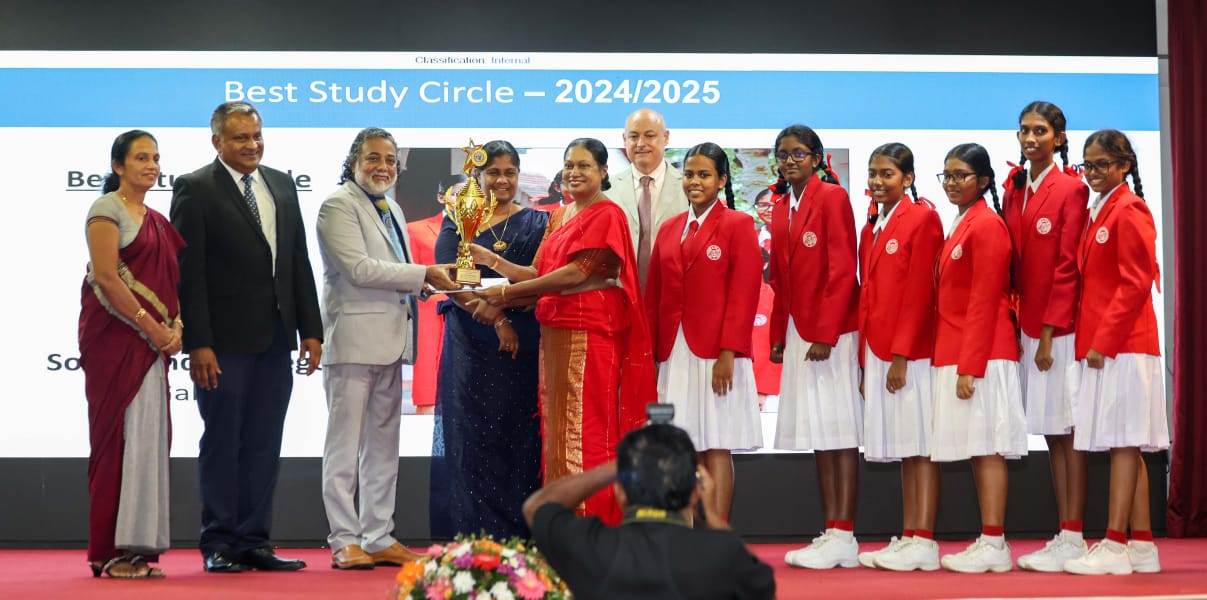 Awardees included Mrs. K.H.A. Peshala from Southlands College, Galle Study Circle Best Teacher in Charge, Best Study Circle awards received Southlands College, Galle, General Knowledge Competition first place Manugi Sadewana Nawarathna from Girls High School, Mount Lavinia, Speech Contest Best Speaker award received Minuri Bandara from Visaka Vidyalaya, Colombo and Essay Contest first place Maneesha Sithmini Bandara from Maliyadeva Balika Vidyalaya, Kurunegala received awards from chief guest Deputy Speaker of Parliament Dr. Rizvi Salih