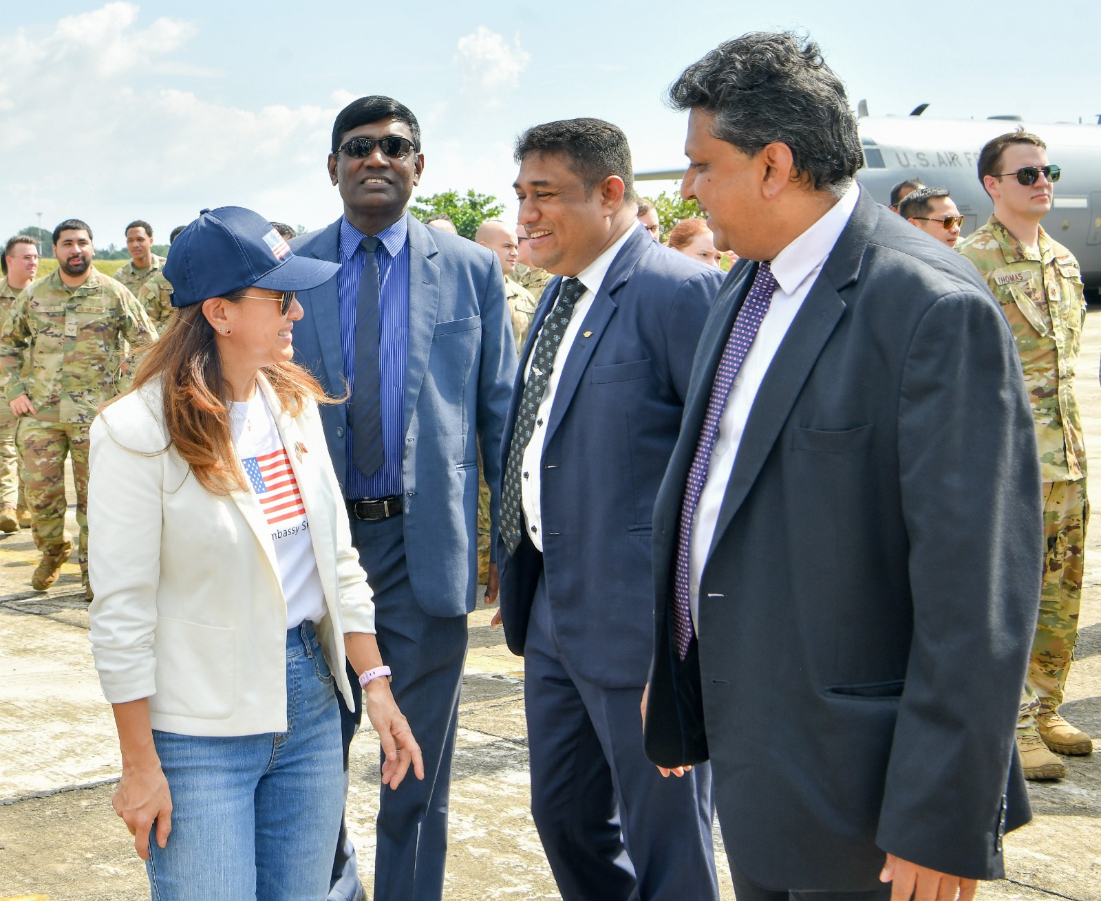 The assistance was presented by the United States through Her Excellency Julie Chung, Ambassador of the United States to Sri Lanka, and Lt. Col. Van Pinxteren of the United States Air Force.