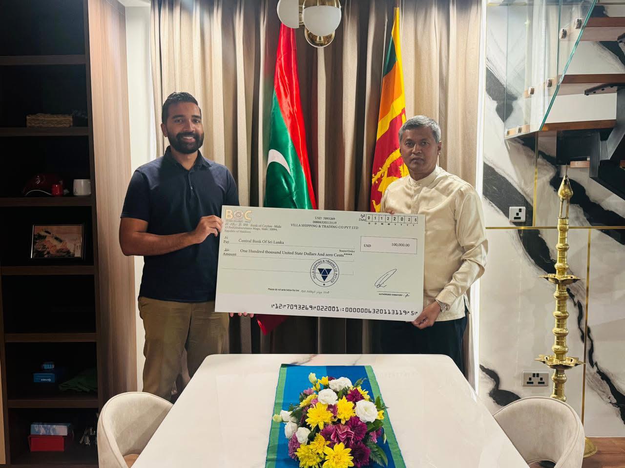 MALE : Corporate magnate Qasim Ibrahim, Chairman of Villa Group of Maldives made a generous donation of $100,000 for the disaster relief efforts in Sri Lanka.