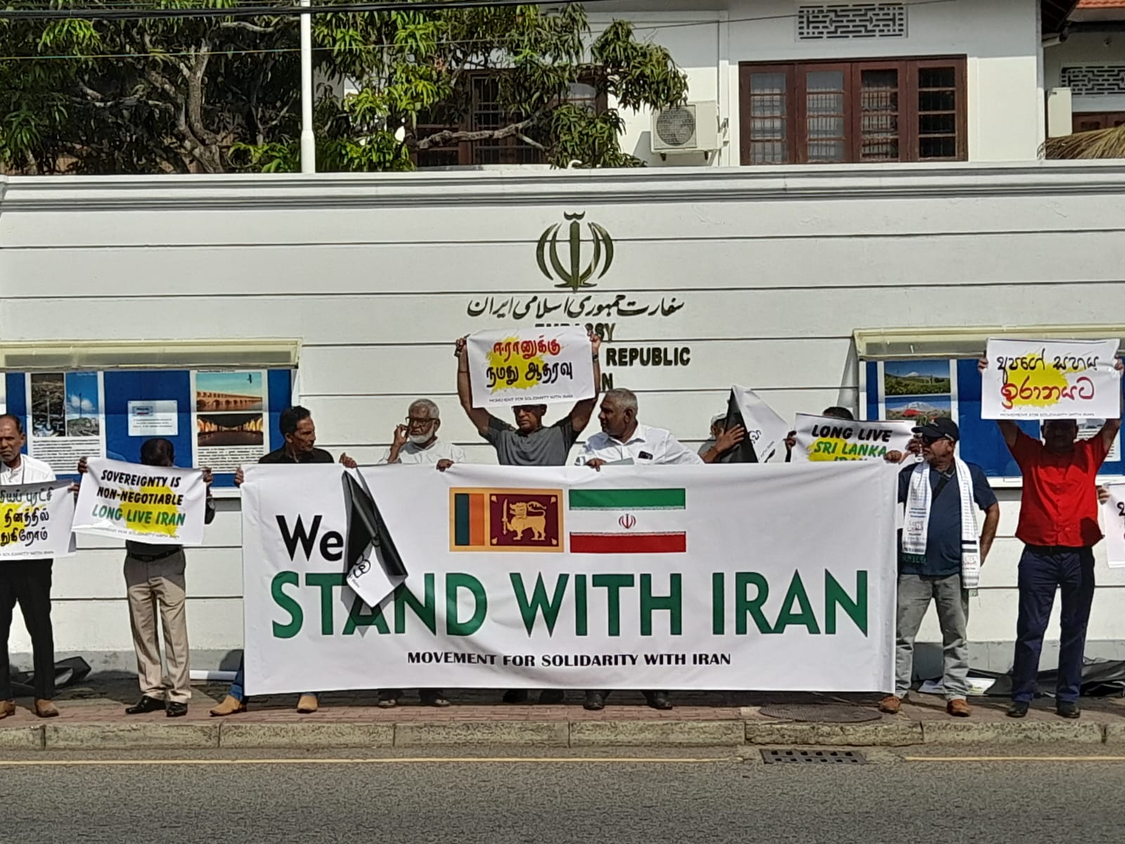 COLOMBO — The Movement for Solidarity with Iran organised ‘ We Stand with Iran ” express from solidarity with the Islamic Republic of Iran and its Leadership in the front of Iran Embassy Colombo Wednesday February 11.