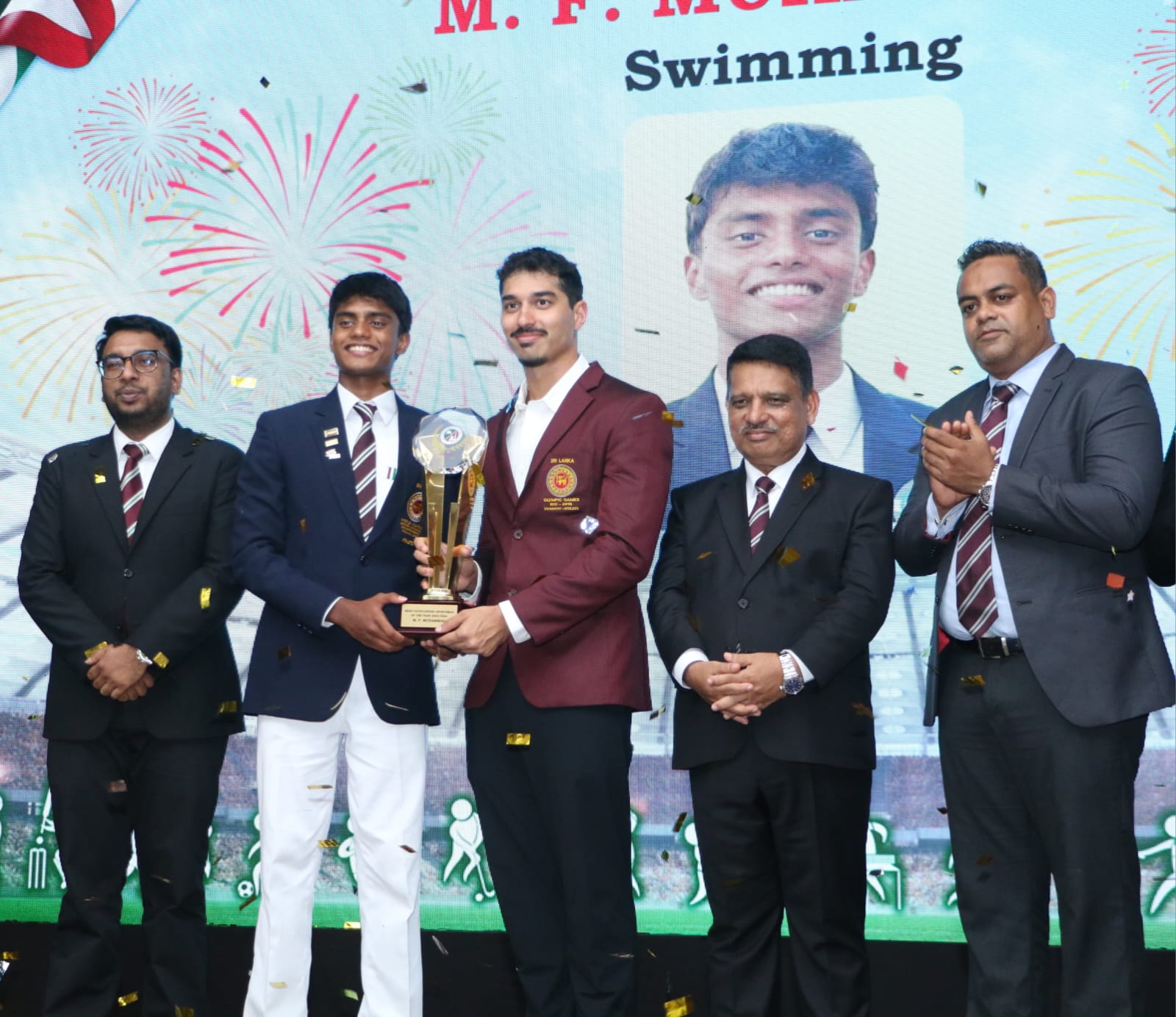 The highlight of the evening was the presentation of the Most Outstanding Sportsman of the Year award to Master M.F. Muhammed for his exceptional accomplishments in Swimming. He was recognized for breaking several national records and representing Sri Lanka on multiple occasions during the year, while continuing his education at Zahira College.